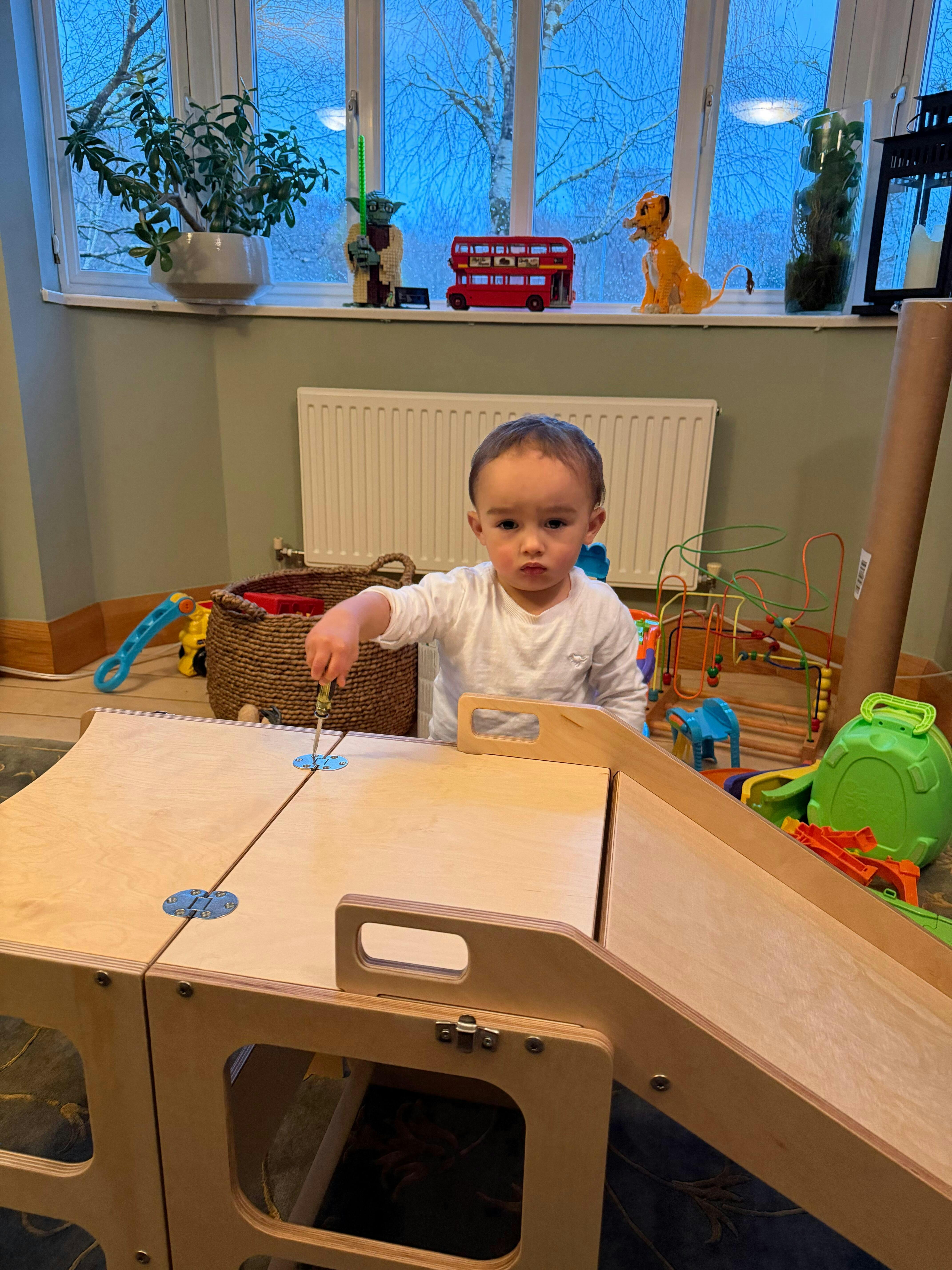 Warning: learning towers and other climbing apparatus are designed to help your child interact at work surface height or develop their sense of adventure. Please never leave your child unsupervised to use their learning tower or other climbing apparatus.